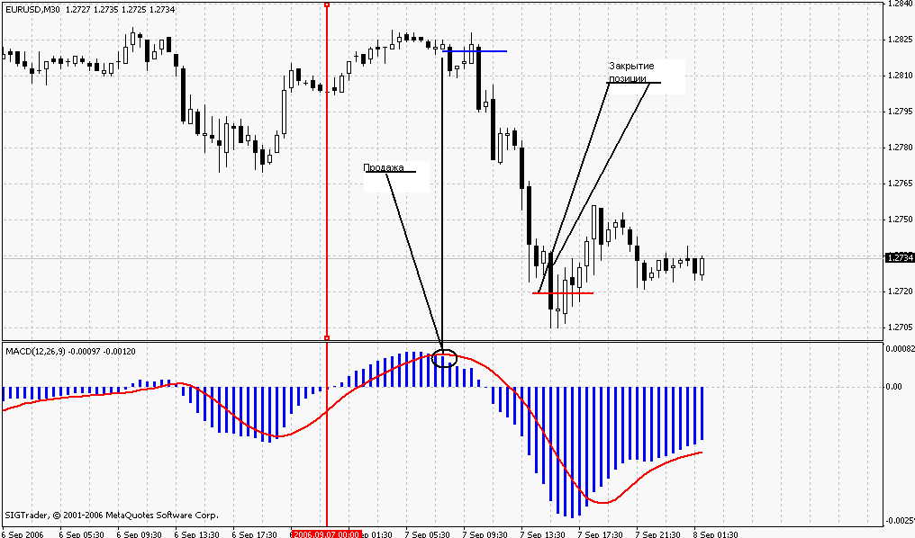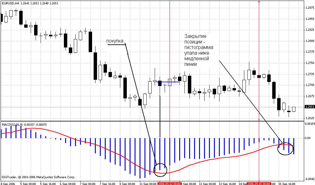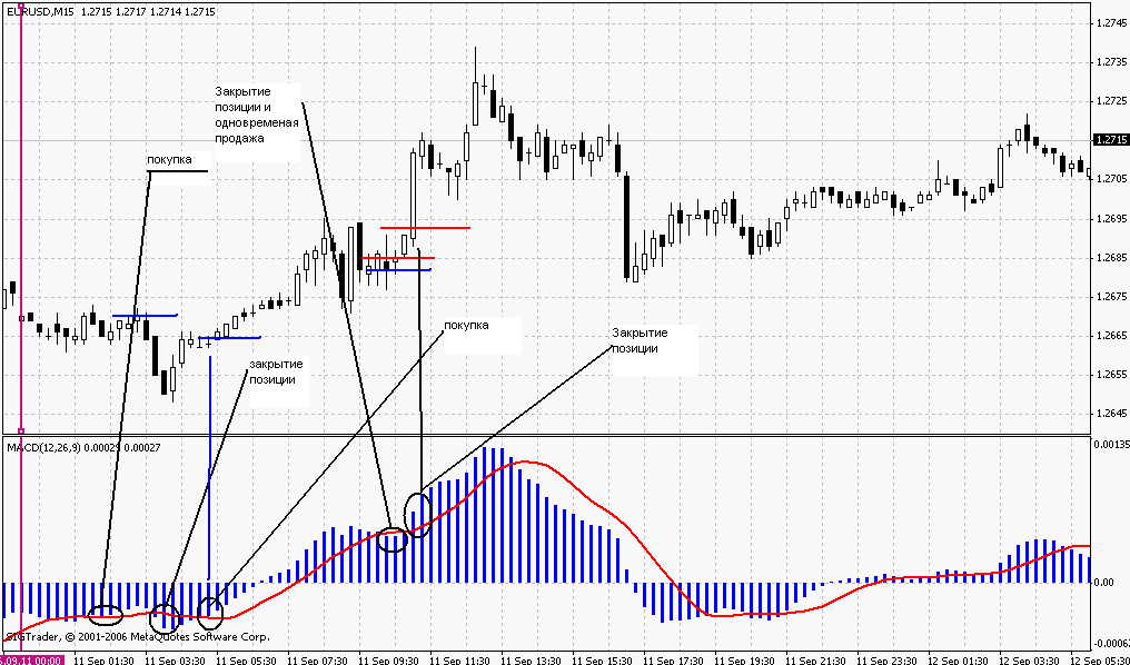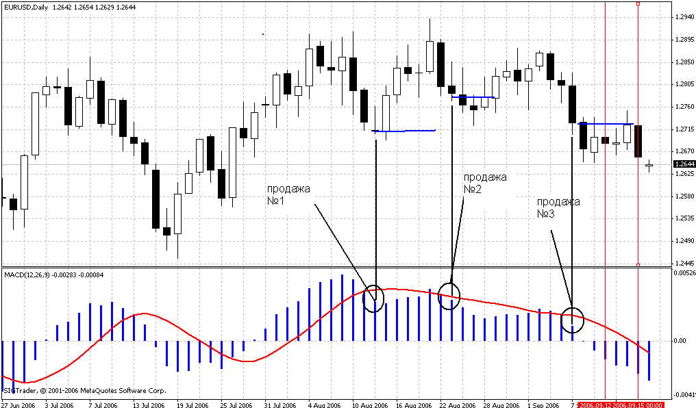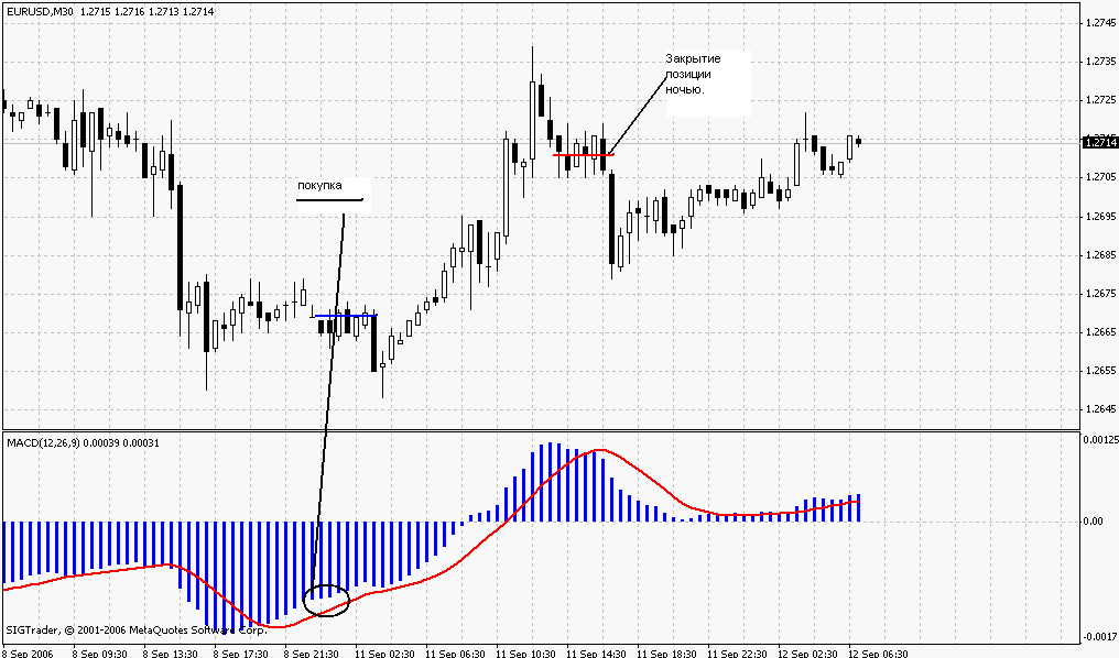 | Ну чтож, началась новая неделя и в моей он-лайн поддержке наметились изменения. С сегодняшнего дня я буду выкладывать ежедневную калькуляцию прибыль/убыток по торговле ( в пунктах) и буду подбивать недельный трейд. Так же я сегодня выложу модуль увеличения прибыли для D1. (Остальные модули ,для Н4, М15, М30 выложу позже). Увеличение нормы прибыли на D1. Сразу хочу сказать, что любое увеличение прибыли несет в себе сильные риски, не стоит забывать об этом. Для дневок оно выглядит следующим образом. При каждом формировании сигнала и его поступлении от MACD следует открывать позиции. В аттаче указан пример действий по накапливанию позиций по возможному направлению движения. Было открыто 3 позиции на продажу :на 1.2714, 1.2780 и 1.2726. При открытии более 1-й позиции по направлению движения осциллятора, требуется расчитать среднюю цену савокупной позиции (1.2714+1.2780+1.2726/3). Т. е. сумма всех цен открытых позиций деленная на количество открытых позиций. В данном случае 1.2740. При достижении ценой данной цифры требуется немедленное закрытие всех позиций!!! В точке 2740 мы получем точку равновесной цены, т. е . прибыли и убытки по открытым позициям будут равны (минус спред и своп, но это я счетаю не убытки ). При открытии нескольких позиций по направлению индикатора не следует пересиживать убытки - это не оправдано. Калькуляция. Итого по торговле на D1 мы имеем +350 пунктов минус своп.
