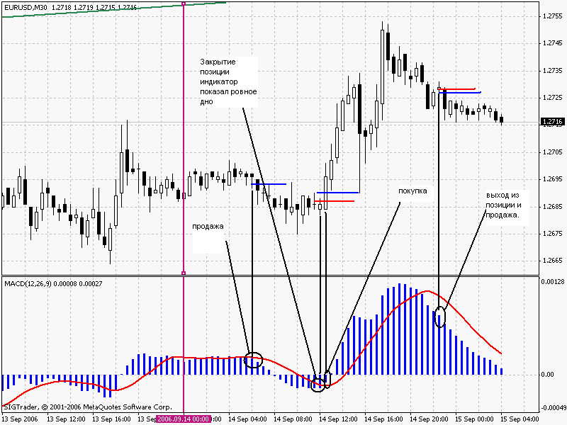 | Готовимся к возможному закрытию позиции на Д1. Индикатор рисует плоское дно. На Н4 находимся в покупающей позиции. Торговля на М30 за 14 сентября в прикрепленном файле.